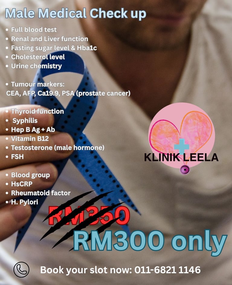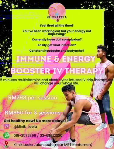 Klinik Leela provides comprehensive men’s health services to help boost vitality, sexual performance, and overall well-being. Our treatments include vitamin drips, testosterone therapy, and health assessments such as sperm analysis and hormone level testing.